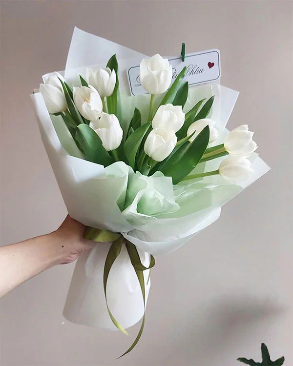 Bó hoa tulip màu trắng tinh khôi được thiết kế từ: